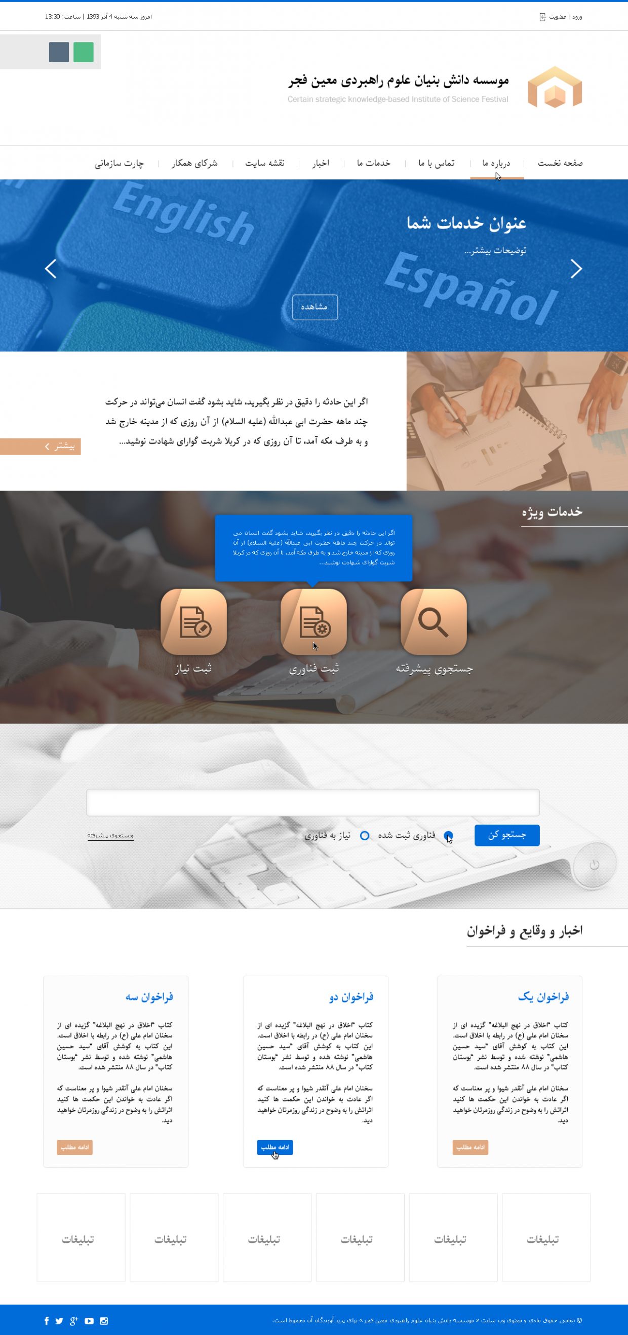 وب سایت موسسه دانش بنیان معین فجر – به درخواست مرحوم، مهندس علیرضا سلطان ذاکرین
