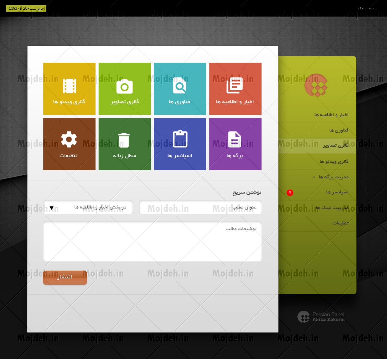 طراحی رابط کاربری سی ام اس اختصاصی پرشین پنل – به سفارش مرحوم، مهندس علیرضا سلطان ذاکرین